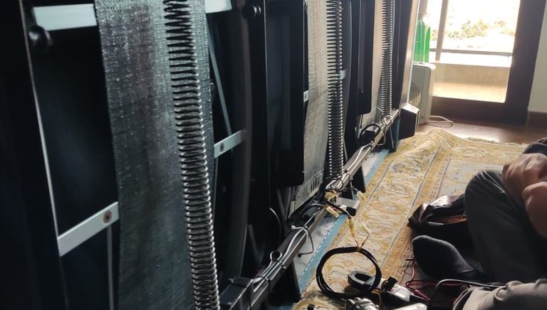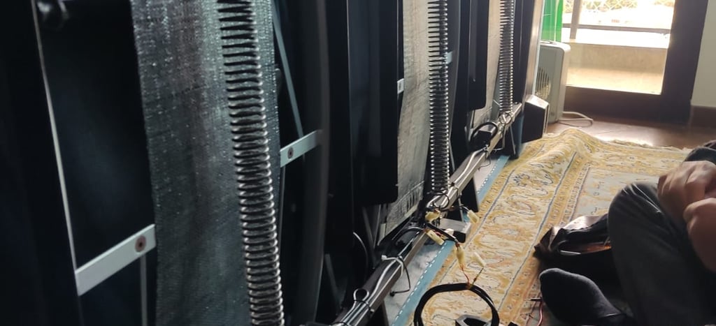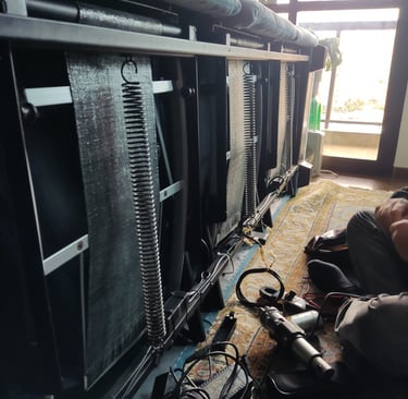 Técnico da Tapeçaria ACM realizando Conserto de sofá elétrico.
